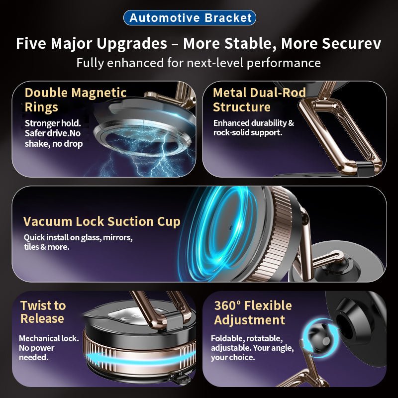 GORDIUS Heavy-Duty Vacuum Suction Magnetic Phone Holder A8 Metal Build
